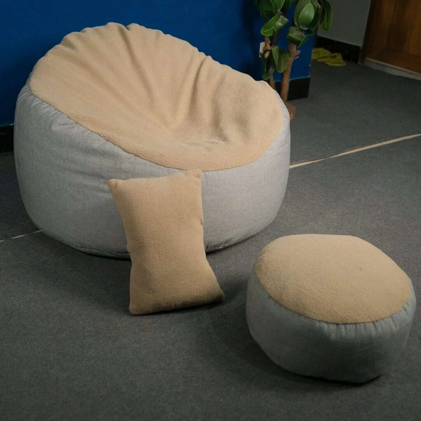 XXXL Premium Comfy Bean Bag – Denim & Furr Fabric, High-Density EPS Filling