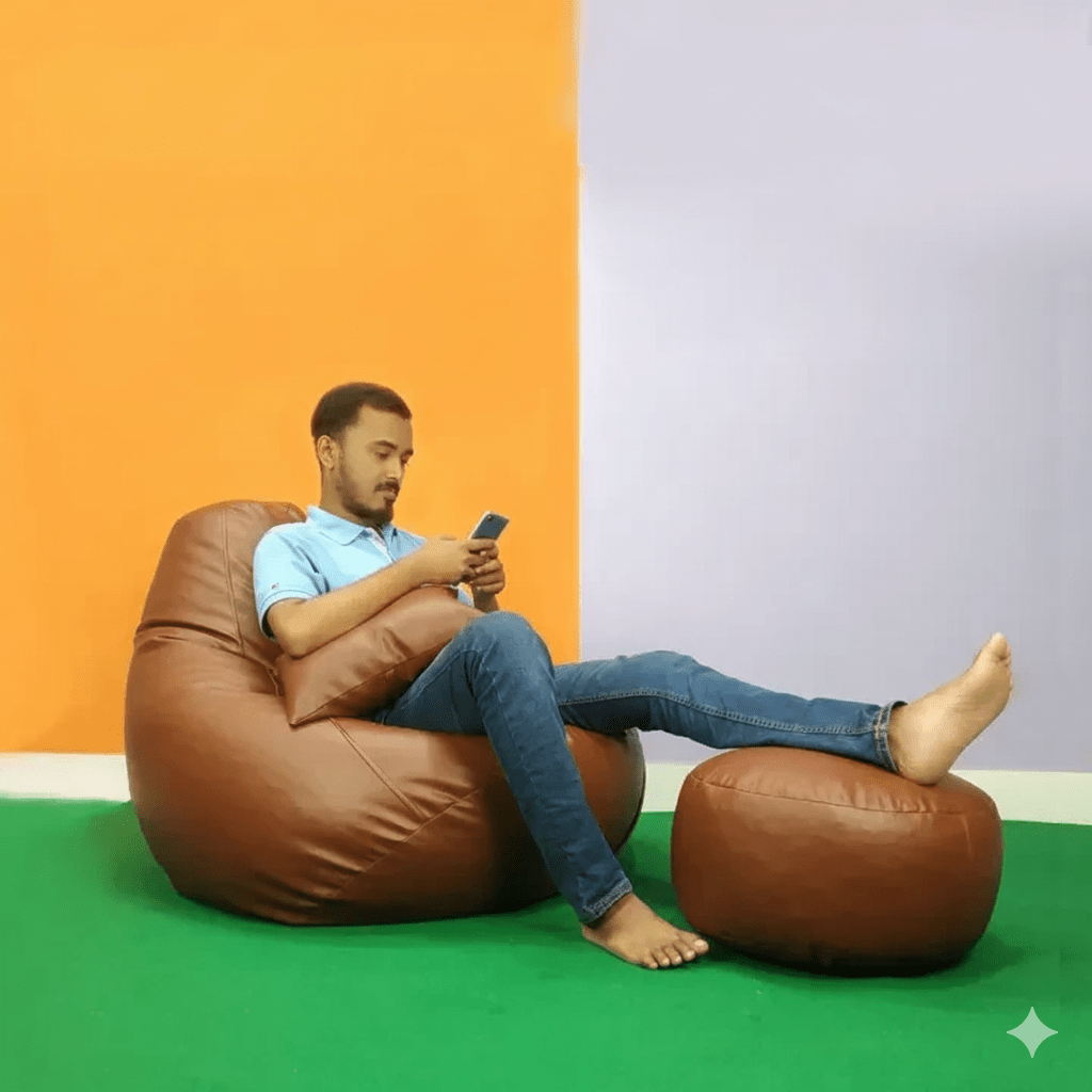 Bean bag chair xxl jumbo shape bean bag with footrest & pillow, premium quality combo set colour: Brown