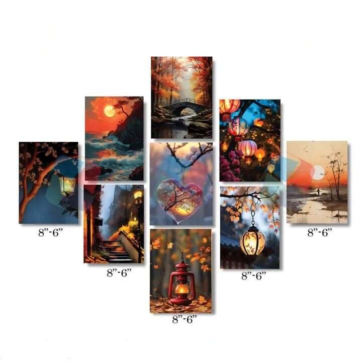 Home Decor PVC Wallboard Set 9pcs 6×8 Inch Wall Posters with Double-Sided Tape Easy Setup Wall Canvas Art for Living Spaces